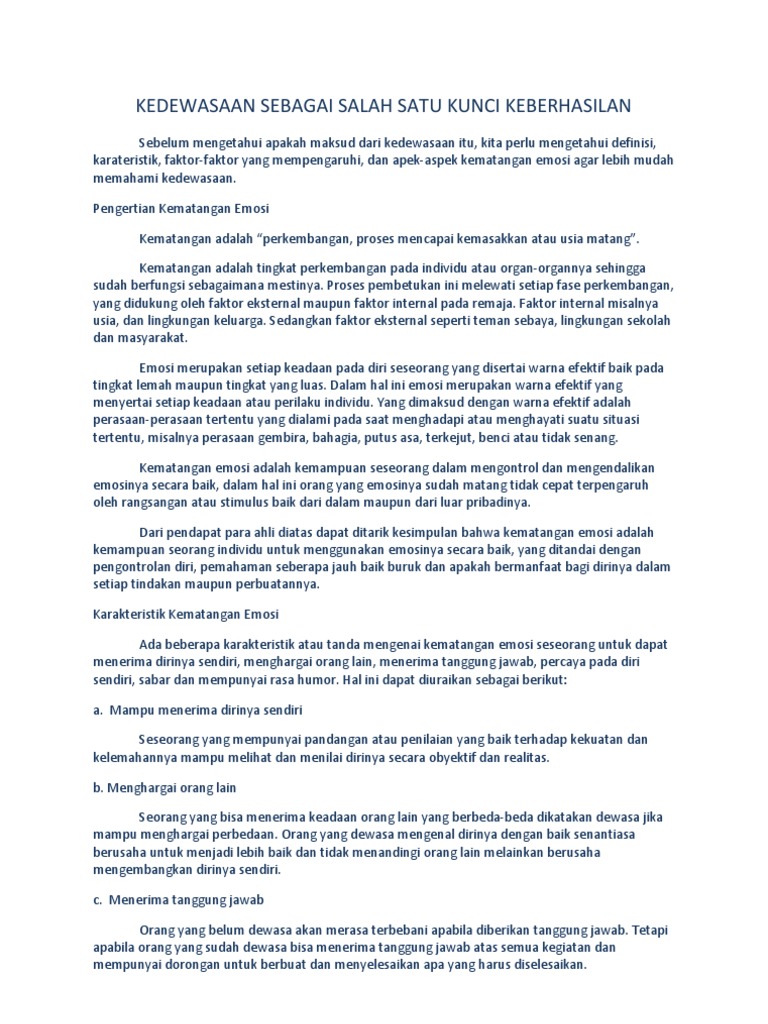 Kedewasaan Sebagai Salah Satu Kunci Keberhasilan from imgv2-2-f.scribdassets.com Kata kata kedewasaan, kata kata tentang kedewasaan, kata kata bijak tentang kedewasaan, perkataan bijak tentang kedewasaan. Kata kata mutiara indah serta bijak tentang masa lalu merupakan kumpulan nasehat dari orang kata kata motivasi kegagalan mario teguh dan tokoh lainnya. Ketika menghadapi masalah besar, menyerah bukanlah sejatinya, kedewasaan tak diukur dari usia seseorang.