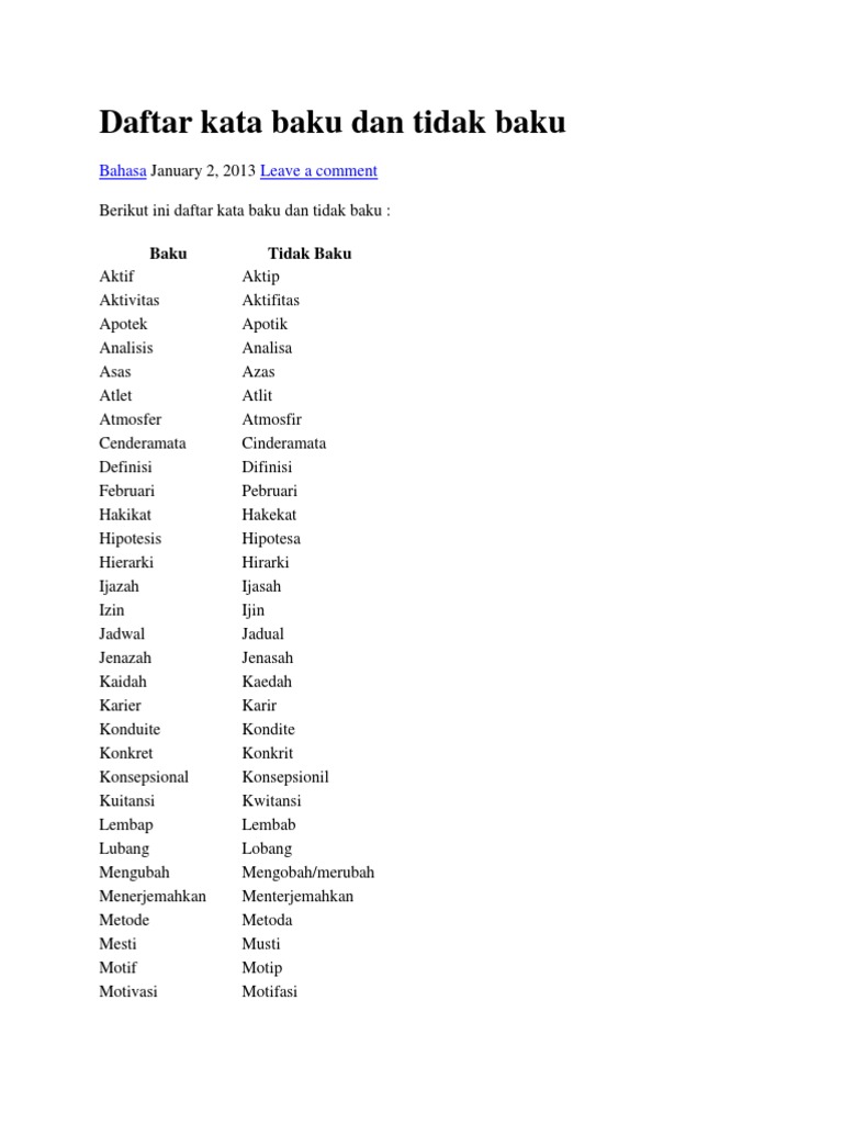 Berikut ini merupakan contoh kata baku dan kata tidak baku dilengkapi dengan pengertian, cara penggunaan, dan perbedaannya.